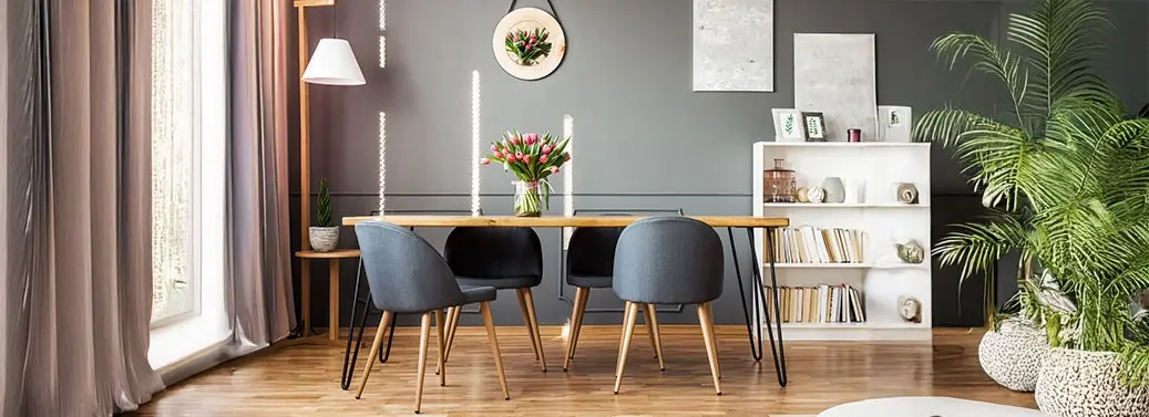 Jak zapewnić funkcjonalność przestrzeni z szarymi krzesłami przy stole?
